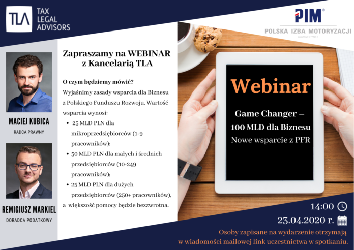 Szanowni Państwo, pragniemy zaprosić na nieodpłatne webinarium we współpracy z Kancelarią TLA dotyczące wsparcia dla Biznesu z Polskiego Funduszu Rozwoju, które odbędzie się w czwartek (23.04) […]